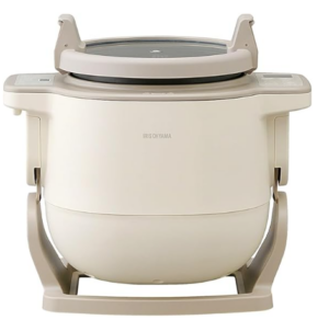 これまでの電気圧力鍋の機能に、焼く・炒める・揚げるなどが加わり、煮物から揚げ物まですべて一台で対応できます。材料を入れるだけで、ほったらかしで、本格調理ができます。予約と保温機能も付いて、お手入れもうち鍋洗うだけと、かゆいところに手が届くイメージ。しかも30,000円を切ったお手頃価格です。